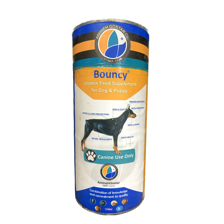 محصول مکمل ویتامینه سگ بانسی (Bouncy)، محصول شرکت داروسازی آمینه گستر که تهیه شده با بهترین ترکیبات و مواد اولیه و کارآمدترین فرمولاسیون که انحصار شرکت داروسازی آمینه گستر می باشد.